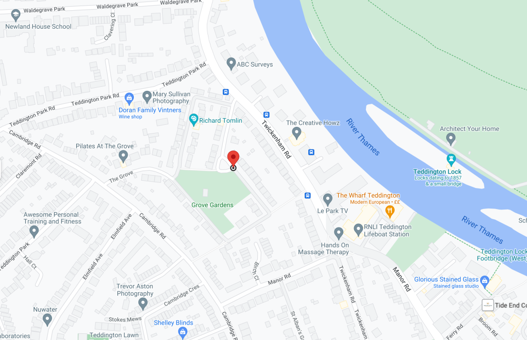 Guitar lessons take place at Stuart’s home just 10 minutes walk from Teddington Station. There are also good bus services that drop you close to Grove Gardens. See below for details.